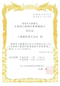 災害時の基礎的事業継続力認定についてはコチラをご覧ください