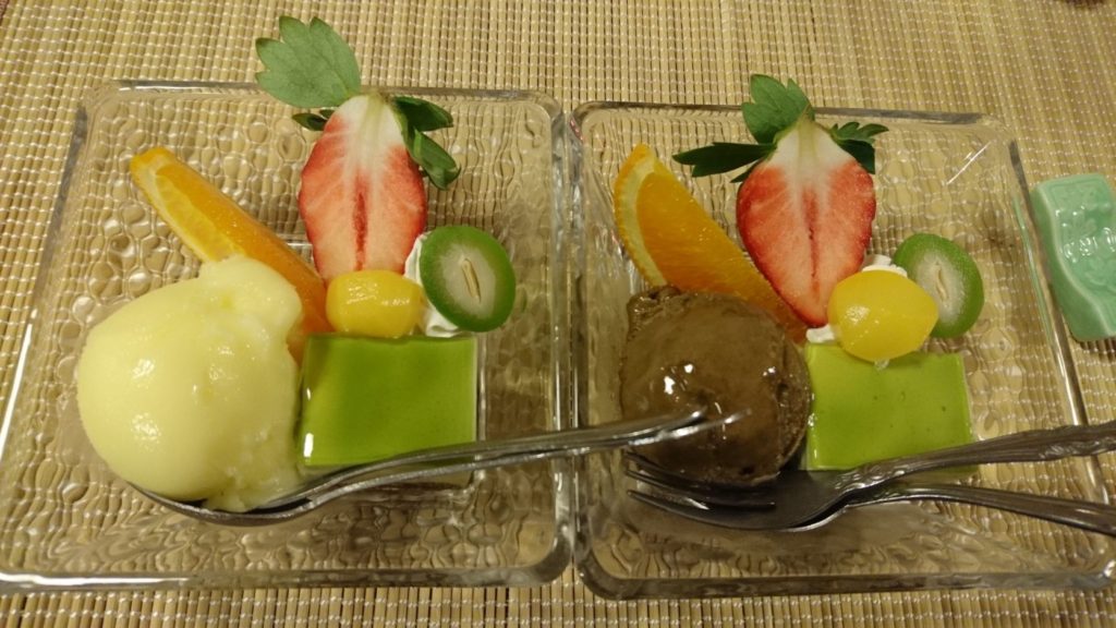 気が付くとデザートが運ばれてきました・・・。