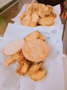 出来上がったお芋の天ぷらに大きな丸いものがありました。