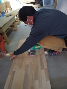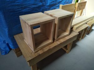 お客様と端材でスピーカーラックを作り進呈いたしました。