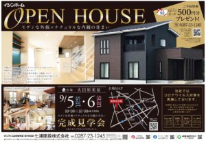 大田原市美原にて注文住宅のお客様邸完成見学会を行います(^^)