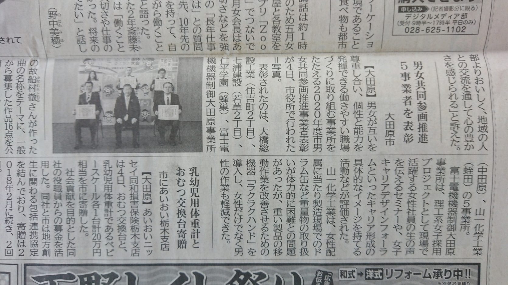 大田原市男女共同参画推進事業者表彰受賞大田原市建設業者七浦建設1