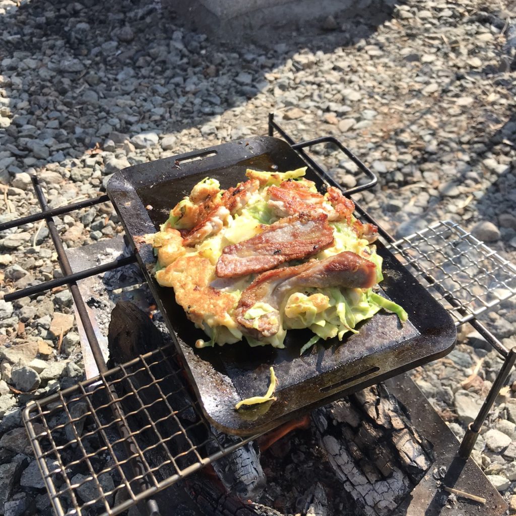 庭で火を起こしてお好み焼きを焼いたとのことで