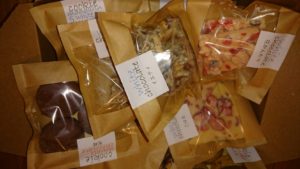 いろいろな味折りチョコが個装梱包で、隙間なく敷き詰まっています。