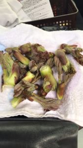 弊社七浦建設が栃木県大田原市佐久山にて現在施工中の暗渠工事佐久山親園BPの現場付近の山林でタラの芽が採れました。
