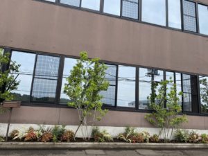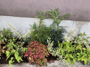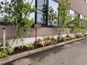 毎日どんよりとした天気ですが、気分を一掃するべく本社前の花壇を北欧風ガーデニングに植え替えました♪