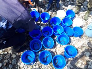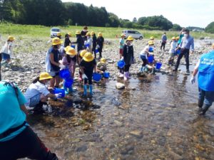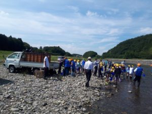 本日晴天青空の下、うなぎの放流が行われました。@那珂川~。