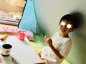 お家で楽しめる夏の企画として、「お家キャンプ」をやってみました。