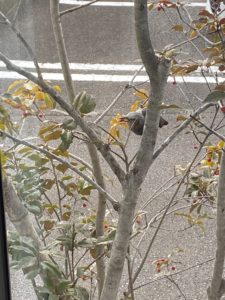 お正月明け早々に、窓越しにヒヨドリが挨拶に来てくれました。