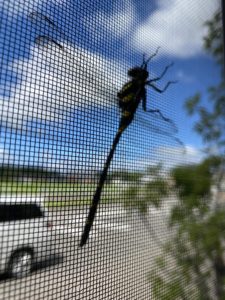 仕事中窓に張り付いていたトンボを見つけました。