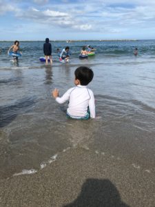最初は海を怖がって入ろうとしなかった4歳の次男