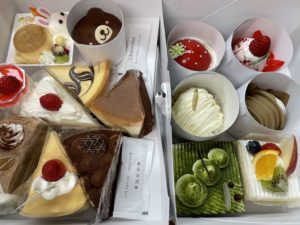 陳列してあるケーキを 「ここからここまで全部お願いします」と店員さんに一言いうだけ。