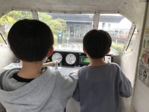 レトロな車体がお出迎えで子どもたちのテンションはマックスです。