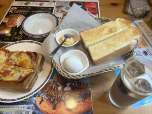 コメダ珈琲は飲み物を頼むと、トーストとゆで卵や小倉あん、ジャムなどが選べました。