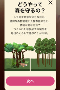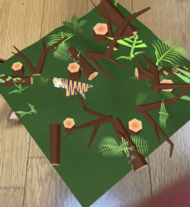 先ほど作った虎の折り紙が森の中を駆けずり回ります