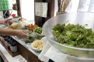 ランチメニューはメインの品を1品頼むとスープ・サラダ・デザートのバイキングが付いてきます。