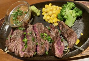 メインはそれぞれパスタ・ステーキ、ローストビーフ、ハンバーグと全員銘々にチョイス。