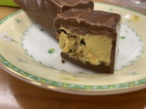 と、食べ方の注意書きがあるのにそのままカットしようとしたら、固くて切るというより割れました・・。