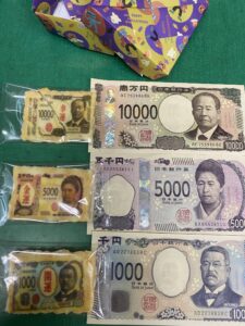 新札のお煎餅もけっこうリアルですね。