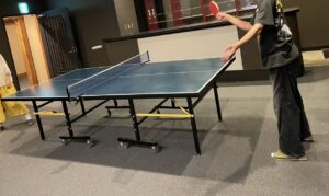食後はお風呂と思いましたが、卓球台が空いていたので温泉の前に卓球をしました。