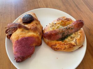 左がカシスクロワッサン←、右はソーセージフォカッチャ→