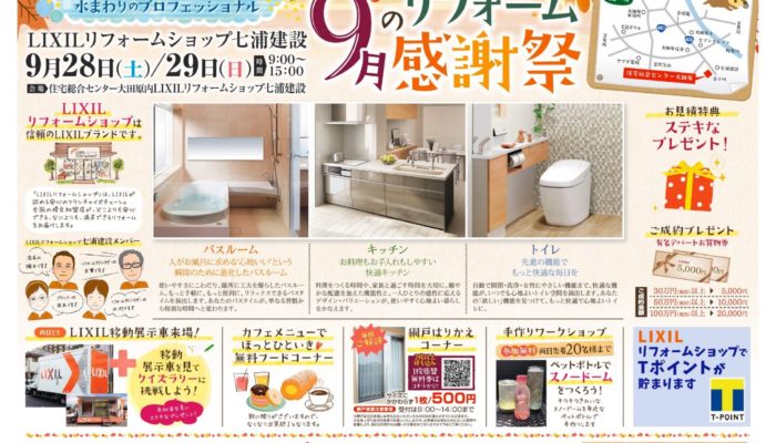 9月28日・29日の土日は、 LIXILリフォームショップ七浦建設の定期イベント開催します! …