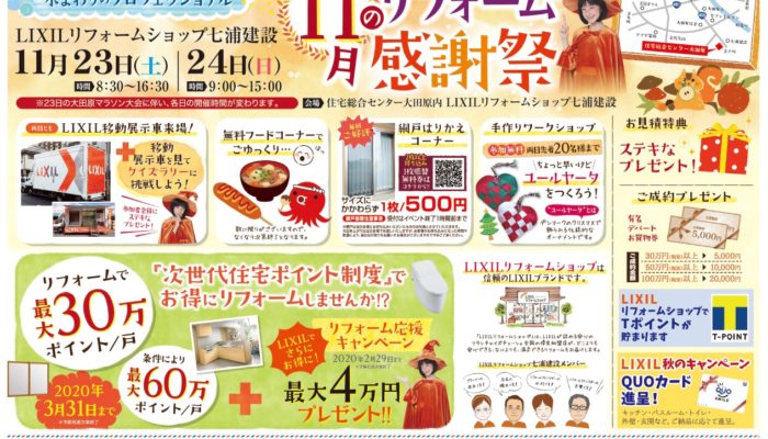 11月23日・24日の土日は LIXILリフォームショップ「11月のリフォーム感謝祭」を開催し…