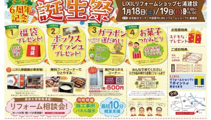こんにちは!! 今日は1/18・19に行われるLIXILリフォームショップ七浦建設のイベントの…